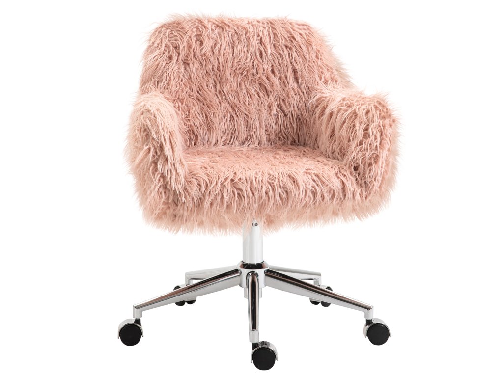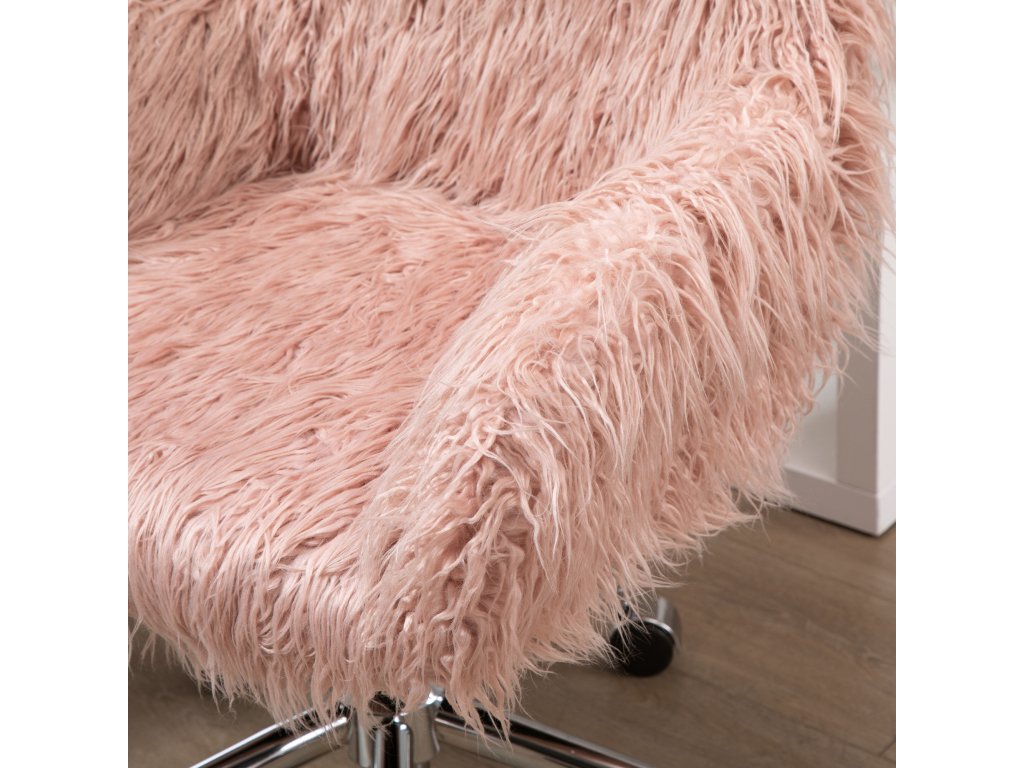 - ELEGANTNÍ STYL: Růžové čalounění z umělé kožešiny se stříbrnou kovovou základnou udělá z této roztomilé kancelářské židle ozdobu vaší šatny, ložnice, pracovny i kanceláře. Skvělý dárek pro dívky, dospívající, dospělé a další.