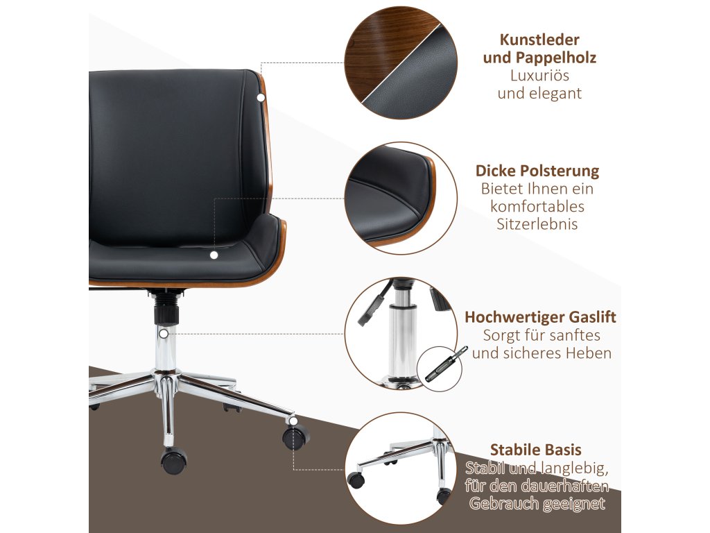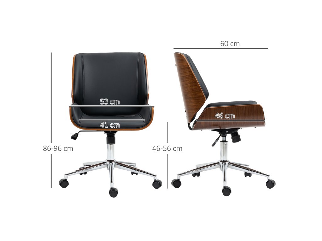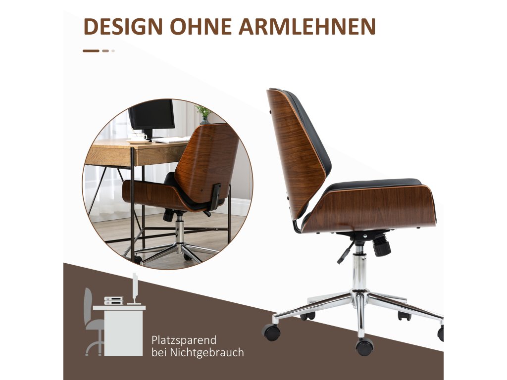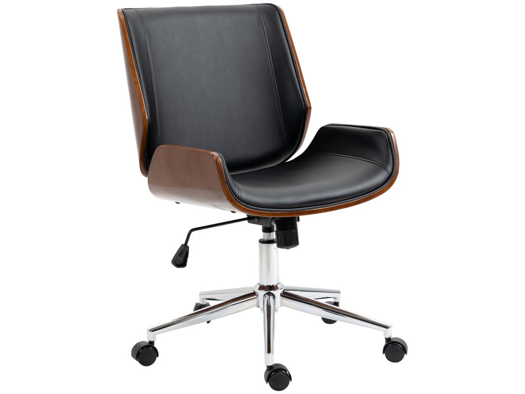 Kancelářská židle Vinsetto retro, výškově nastavitelná dřevěná kancelářská židle, otočná židle s funkcí naklápění, černá | Aosom