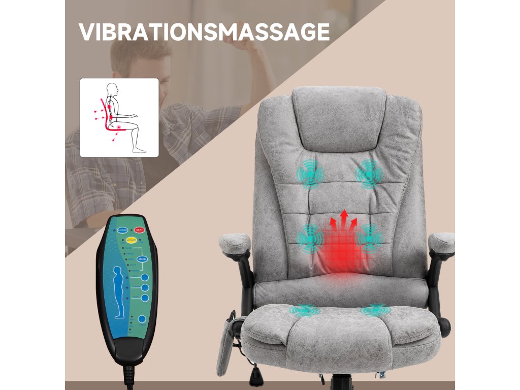 Kancelářská židle Vinsetto s masážní a tepelnou funkcí, ergonomická, výškově nastavitelná, bez tření, 6 masážních bodů, 68 Š x 72 H x 110-120 V cm, šedá| Aosom