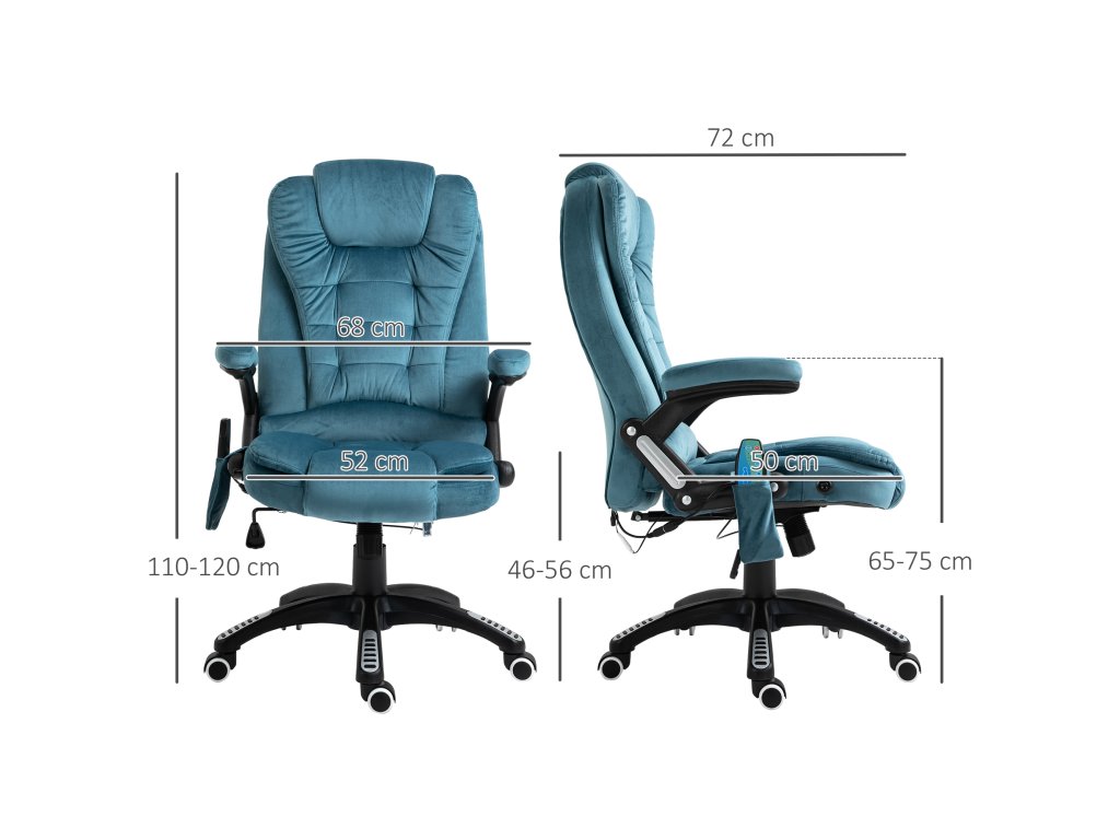 Kancelářská židle Vinsetto s masážní a tepelnou funkcí, výškově nastavitelná herní židle do 120 kg, 68x72x110-120 cm, modrá | Aosom.de