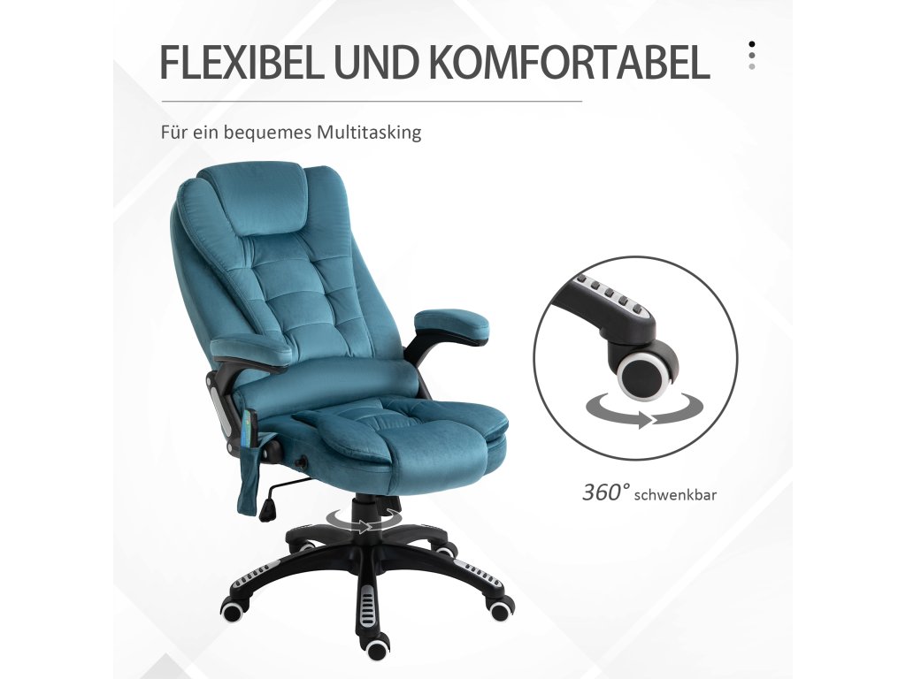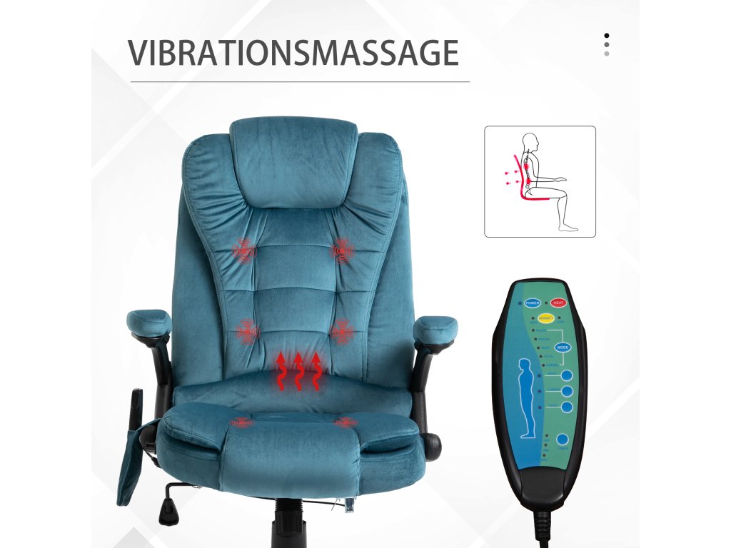 - Více než jen manažerská židle: Tato kancelářská židle je více než jen pohodlně čalouněná manažerská židle se stylovým potahem: má také masážní a vyhřívací prvky pro wellness na pracovišti.
