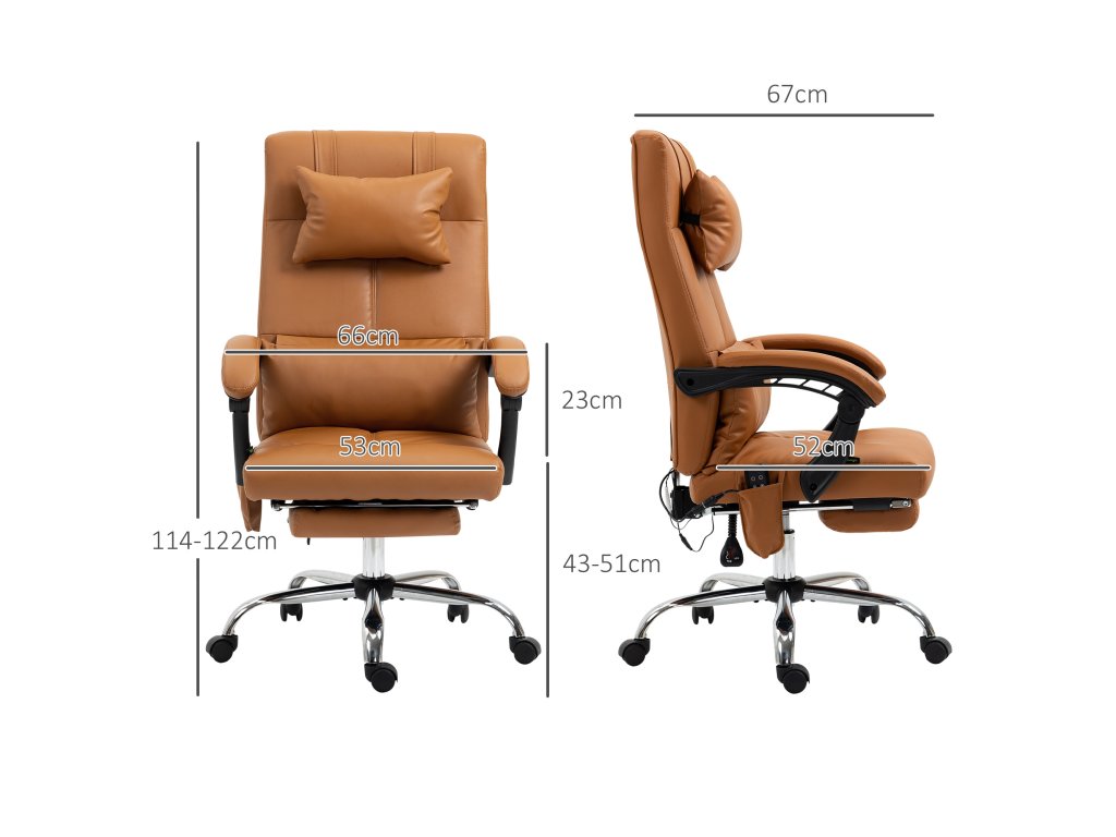 Kancelářská židle Vinsetto s masážní funkcí, bederní vyhřívání, 6 masážních bodů, 5 režimů, nosnost 120 kg, 66x67x115-123cm, koženka, světle hnědá| Aosom