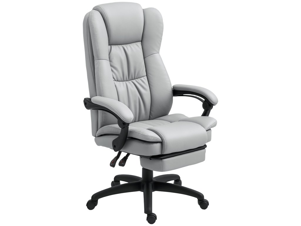 Kancelářská židle Vinsetto s masážní funkcí, ergonomická kancelářská židle s funkcí polohování, výškově nastavitelná manažerská židle s funkcí otáčení, podnožka, dálkové ovládání, koženka, světle šedá barva