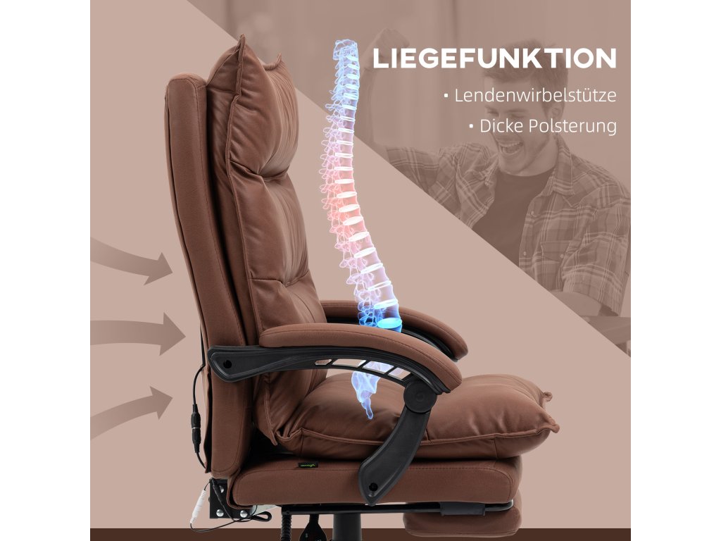 Kancelářská židle Vinsetto s masážní funkcí, naklápěcí v úhlu 155°, otočná židle s područkami, ergonomická kancelářská židle, hnědá| Aosom