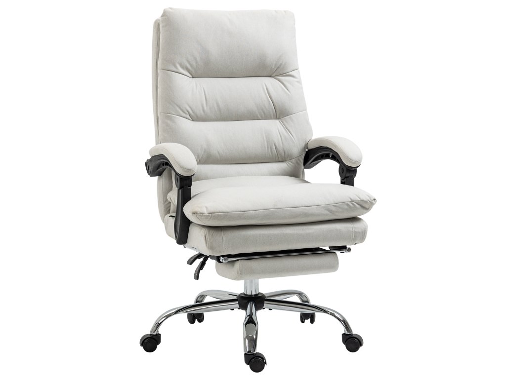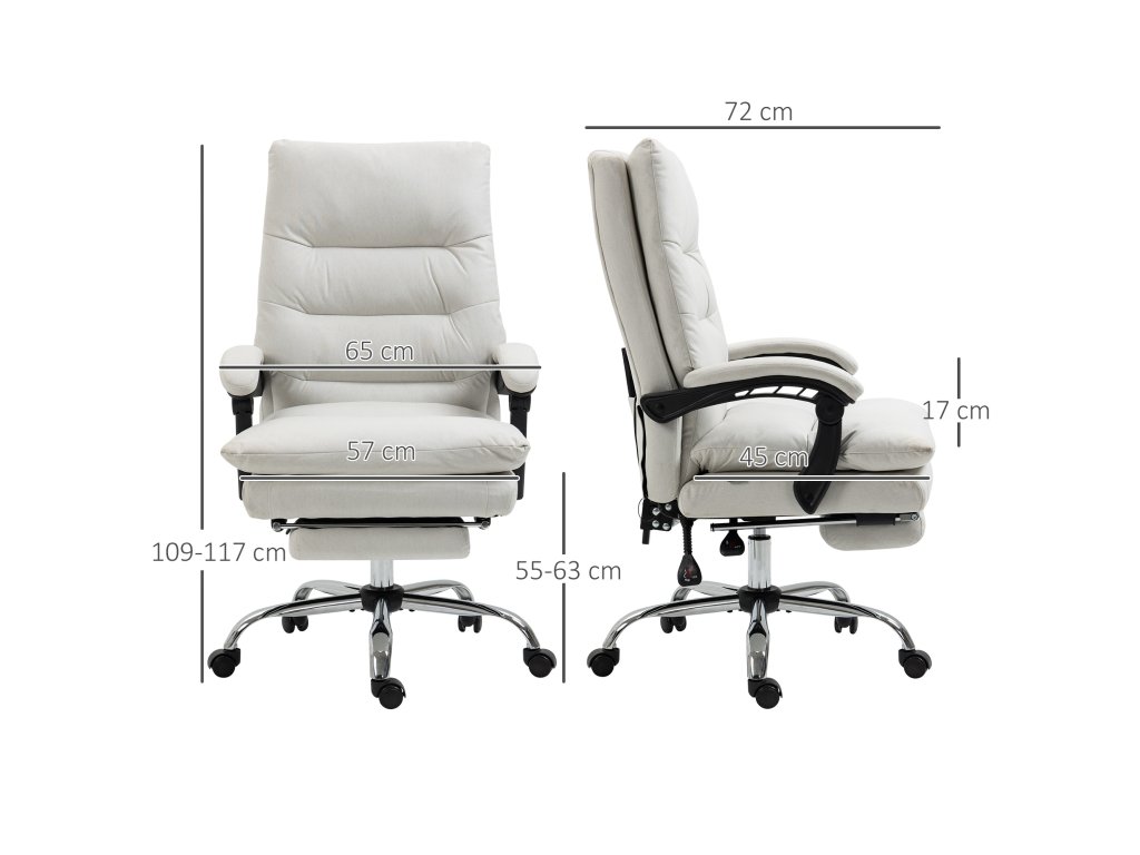 Kancelářská židle Vinsetto s masážní funkcí, s opěradlem sklopným o 135°, výškově nastavitelná, nosnost 120 kg koženka 65x72x109-117cm krémová bílá| Aosom