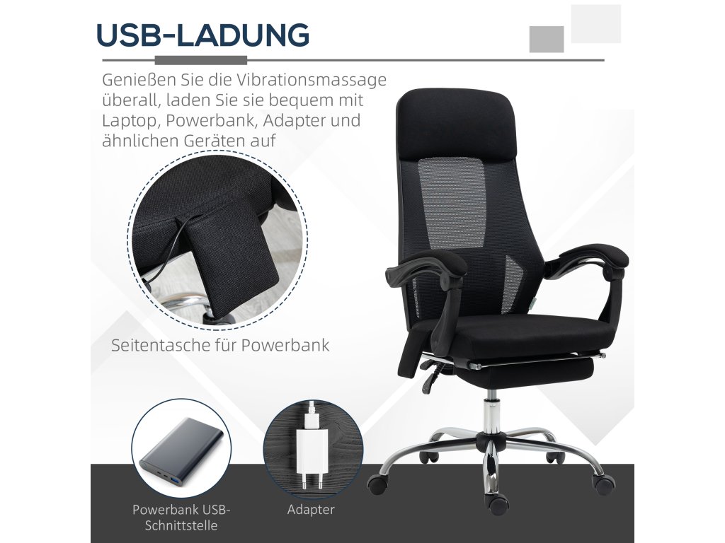 Kancelářská židle Vinsetto s masážní funkcí USB rozhraní včetně podnožky nastavitelné opěradlo do 120 kg Černá 60x57x115-123 cm | Aosom.de