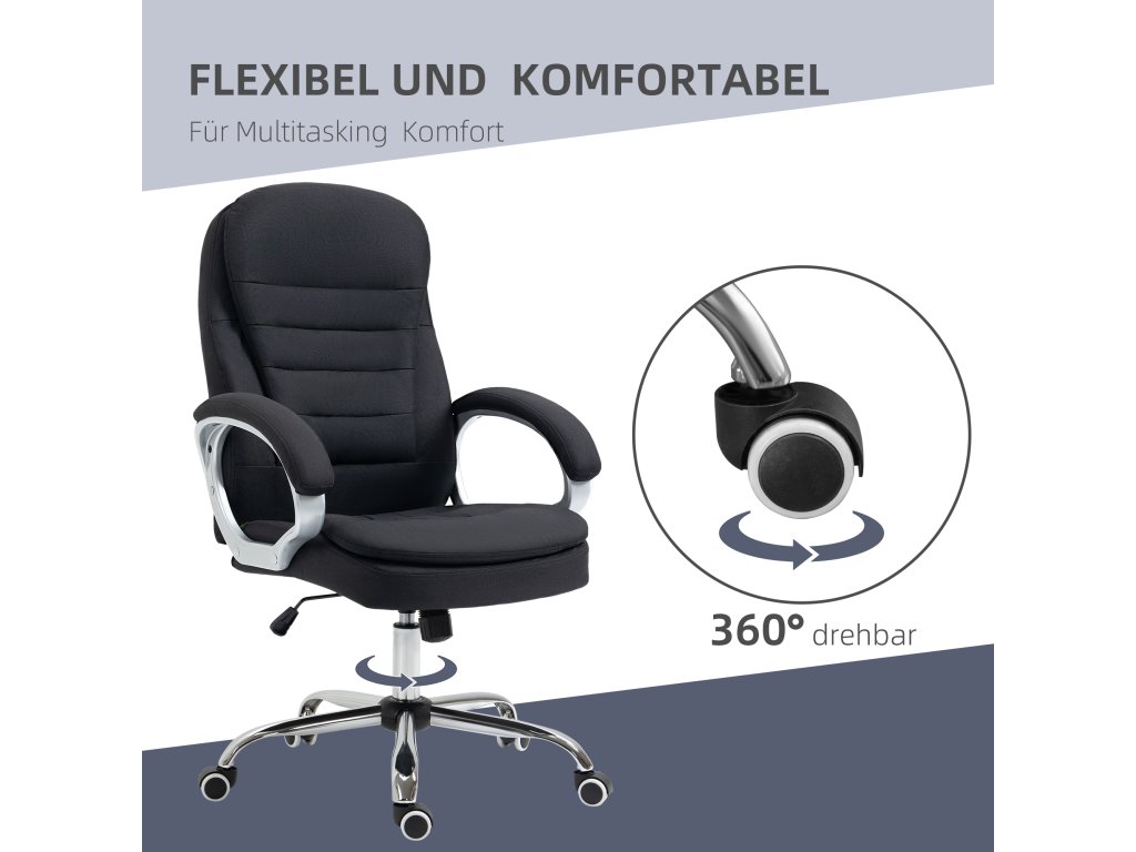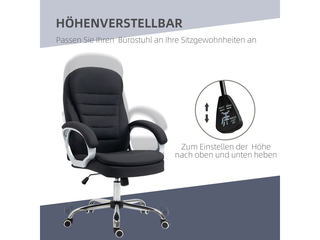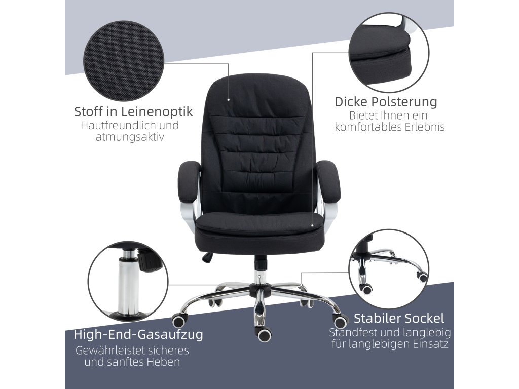 Stresující pracovní dny, napjaté svaly, bolesti hlavy: každý kancelářský živočich potřebuje dobrou židli. Tato nová kancelářská židle od společnosti Vinsetto vás nyní zachrání od bolesti! Čalouněný ergonomický opěrák a sedák účinně zabraňují napětí zad a krku, a to i při dlouhém sezení. Prodyšný lněný potah zajišťuje pohodlné sezení při jakékoli teplotě a stylové opěradlo je vybaveno houpacím mechanismem, ale lze jej samozřejmě také zaaretovat. Díky plynule nastavitelné výšce sedáku, širokému sedáku a nosnosti až 120 kg je židle vhodná pro všechny tělesné velikosti. Díky univerzálním kolečkům s plynulým chodem a sedáku otočnému o 360° jste v kanceláři vždy mobilní - společná práce je tak ještě pohodlnější.