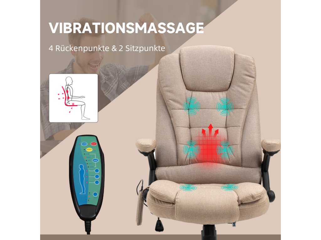 Kancelářská židle Vinsetto s vibrační masáží, ergonomická kancelářská židle s vyhříváním a funkcí polohování, výškově nastavitelná manažerská židle s dálkovým ovládáním, boční kapsa, vzhled lnu, hnědá barva