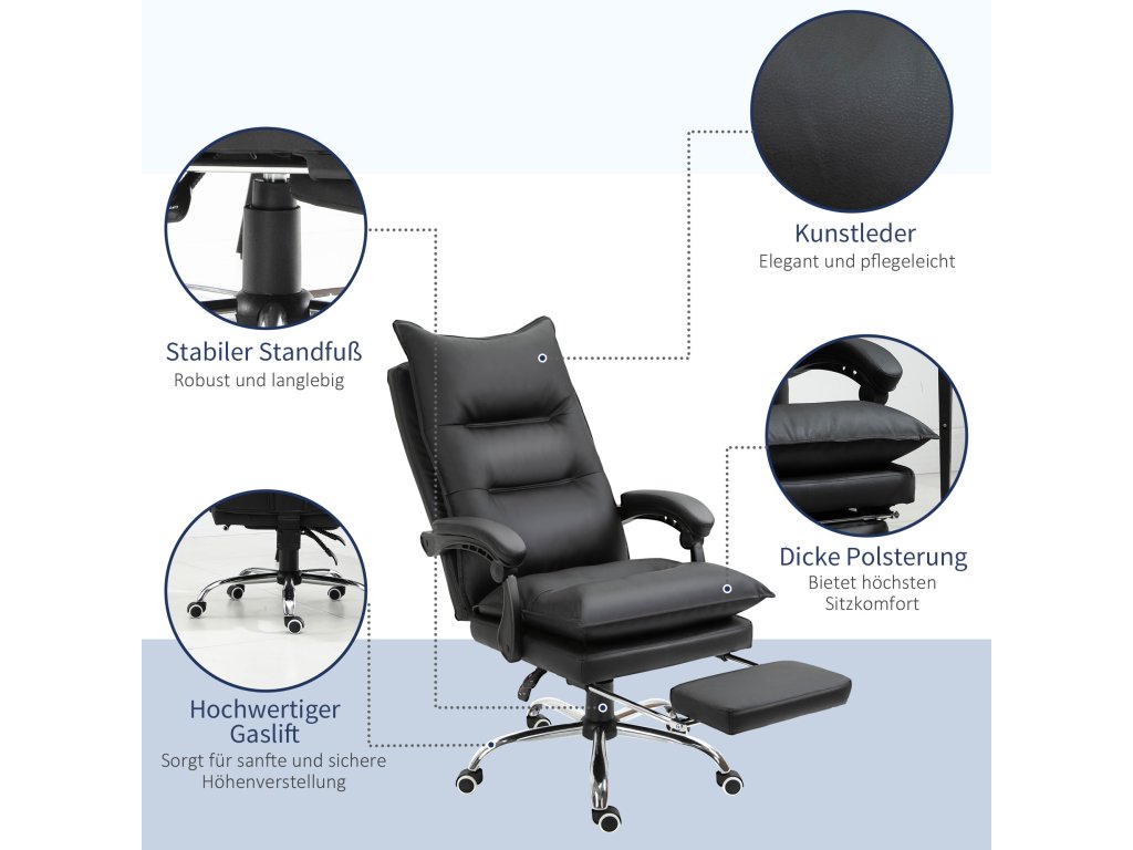 Kancelářská židle Vinsetto Výškově nastavitelná kancelářská židle s podnožkou z umělé kůže černá 66x72x122-130cm pro pohodlnou práci | Aosom.de