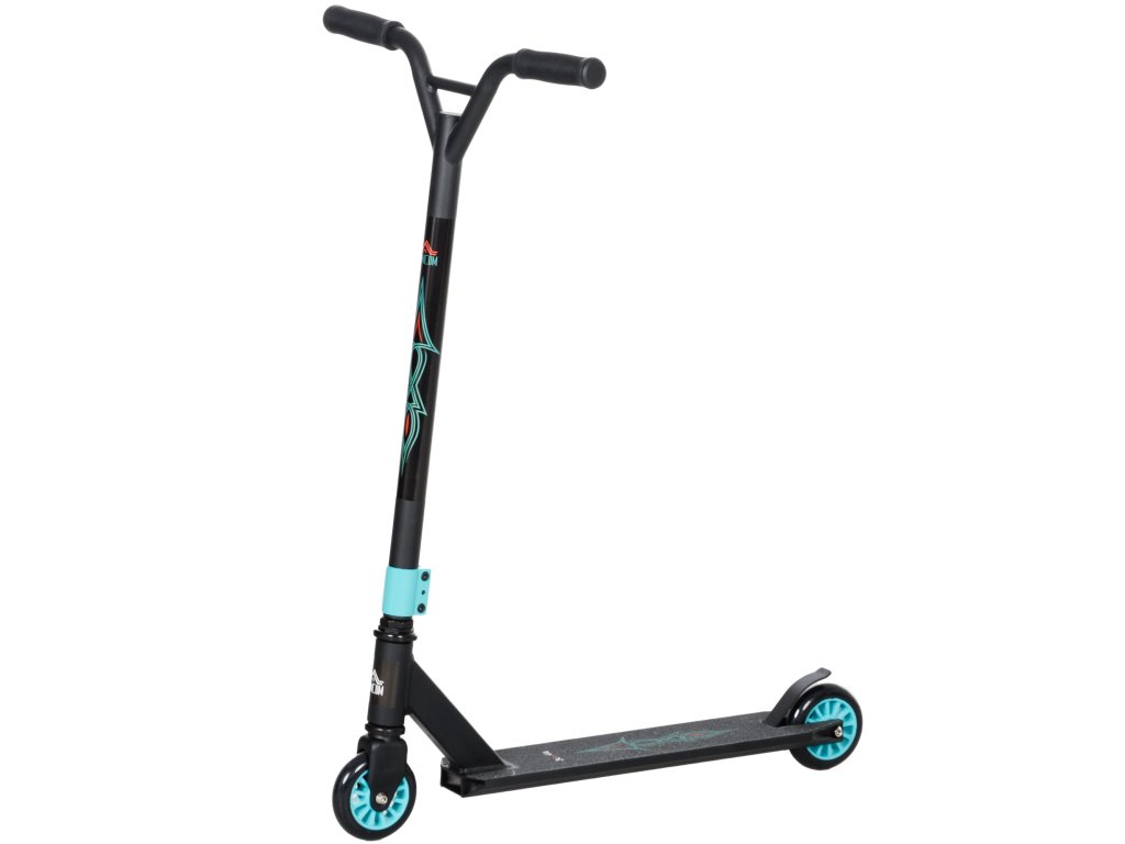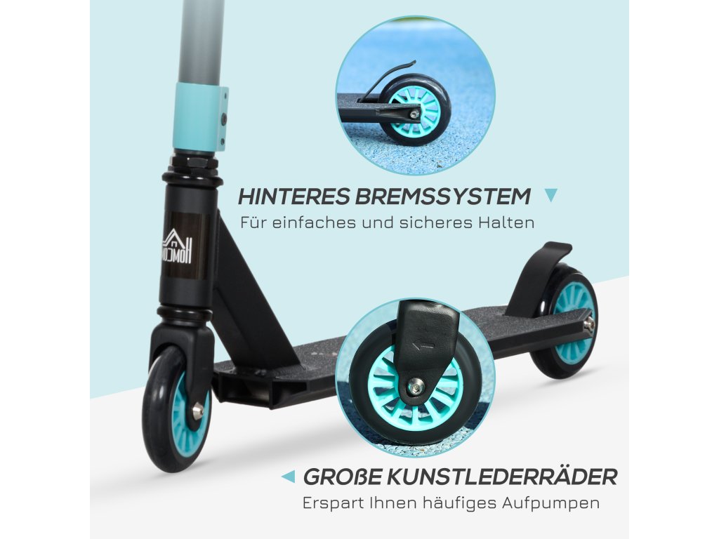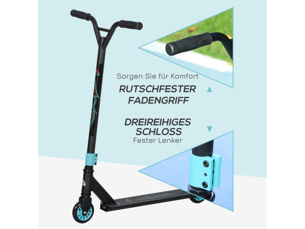Kaskadérská koloběžka HOMCOM, zábavná koloběžka, kaskadérská koloběžka s kuličkovými ložisky ABEC 9, kopací koloběžka se 100 mm kolečky z imitace kůže, šlapací koloběžka, městská koloběžka, triková koloběžka pro děti od 14 let