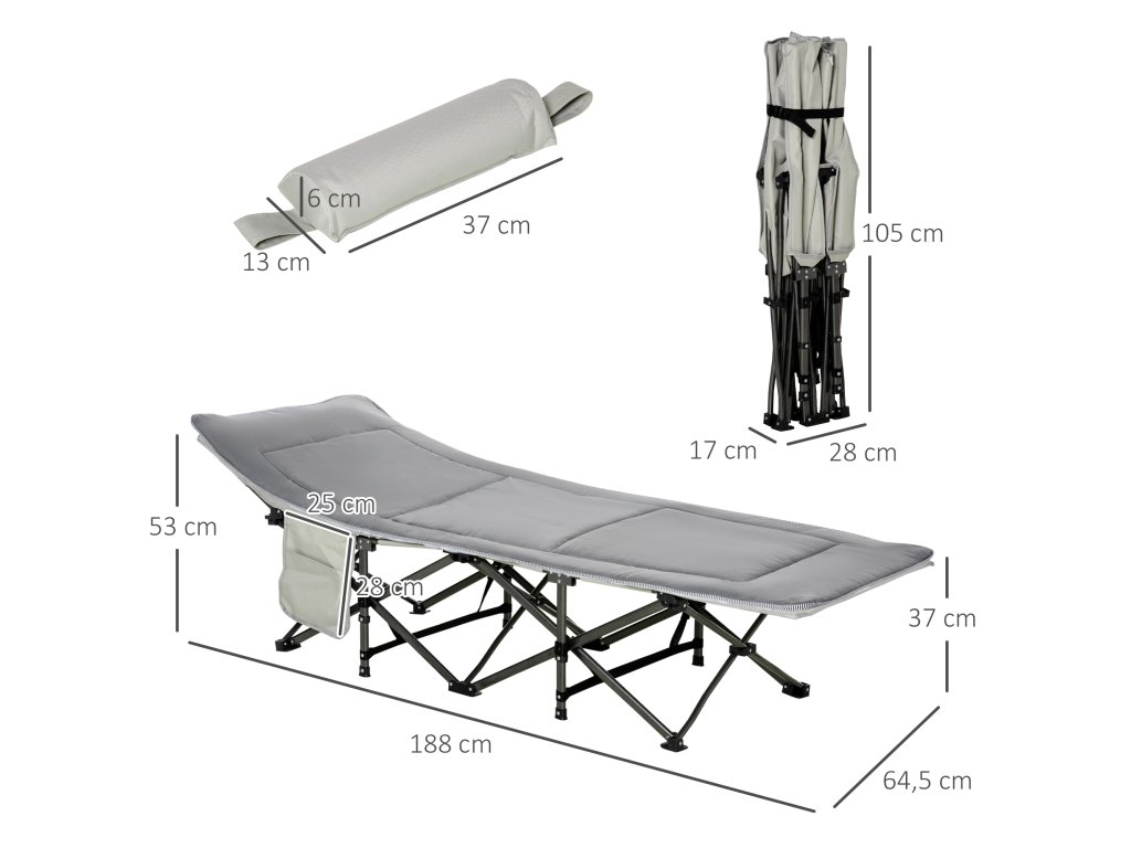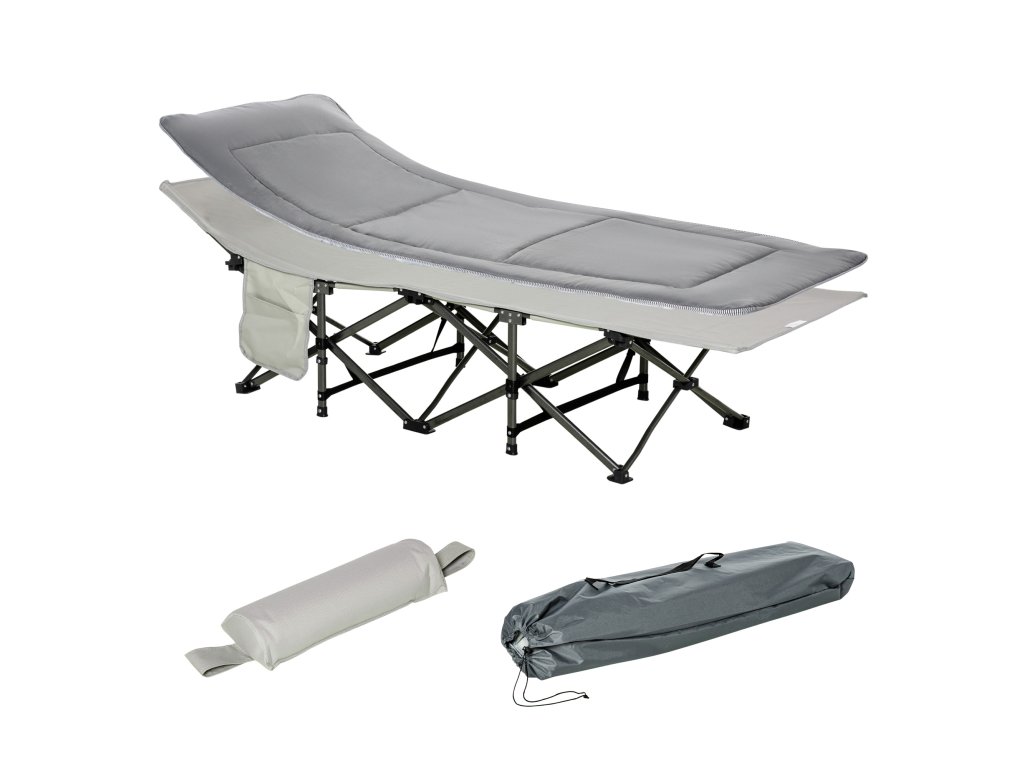 Kempingová postel Outsunny Skládací kempingová postel s polštářem a boční kapsou, matrace ve světle šedé barvě, nosnost až 150 kg | Aosom.de