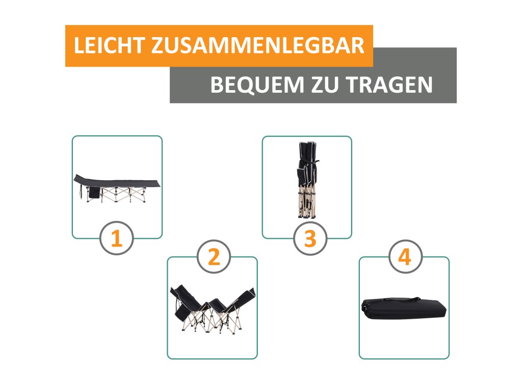 Vždy si pohodlně lehněte, a to i na cestách. S naší snadno přenosnou kempinkovou postelí od společnosti Outsunny to není žádný problém. Lehátko je skládací, takže ho lze rychle postavit i sundat. Odolný potah Oxford je odolný proti povětrnostním vlivům a roztržení a unese až 150 kg. Práškově lakovaný rám je robustní a odolný vůči povětrnostním vlivům a je ideální pro váš příští výlet do přírody.