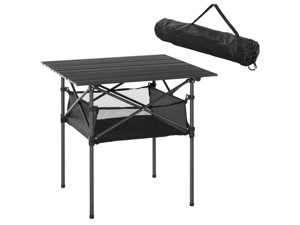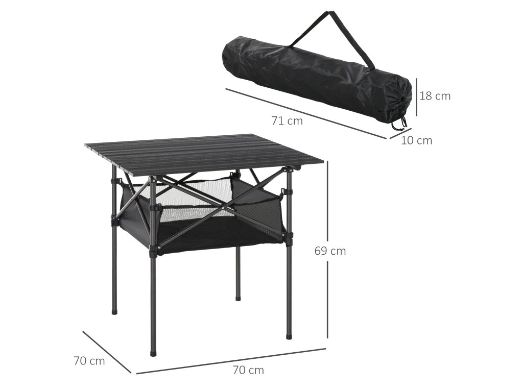 Kempinkový stůl Outsunny Skládací hliníkový stůl, lehký, přenosný, se síťovanou taškou, černý, 70x70x69cm| Aosom