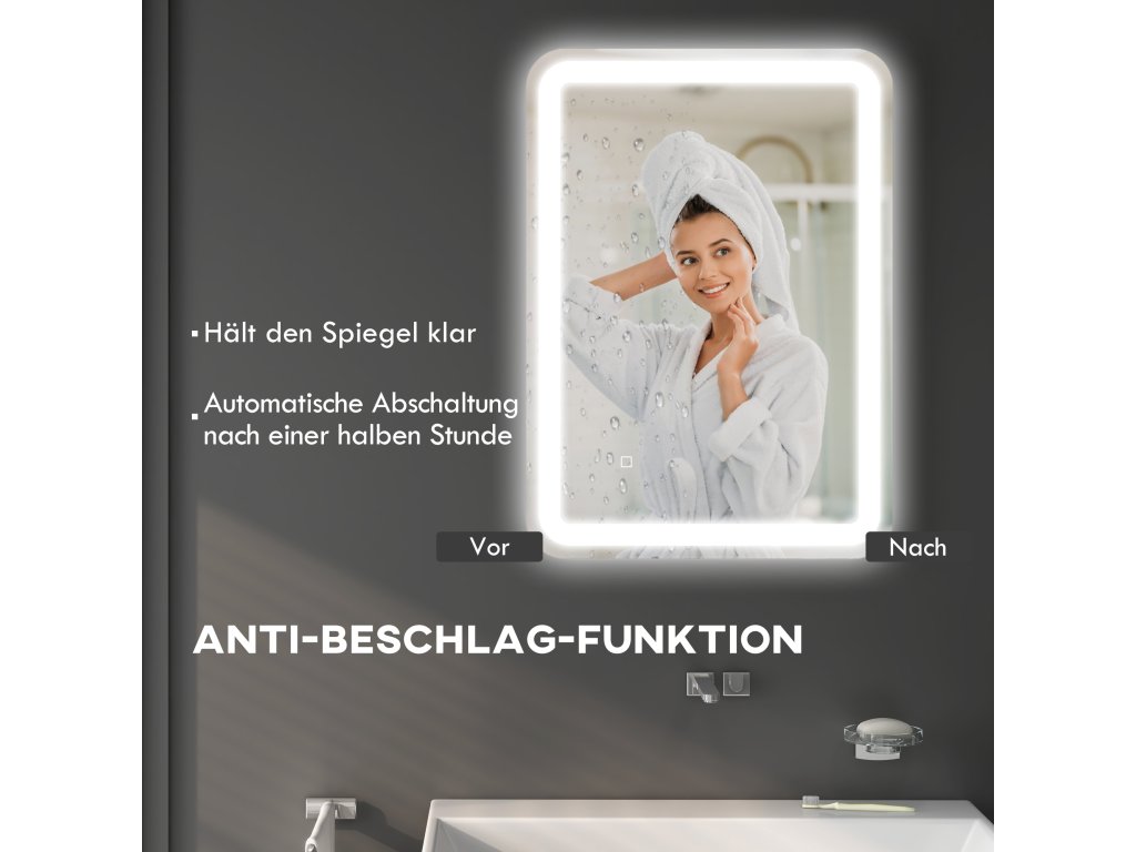 - ✔ Koupelnové zrcadlo proti zamlžování s automatickým vypnutím po 30 minutách pro úsporu energie