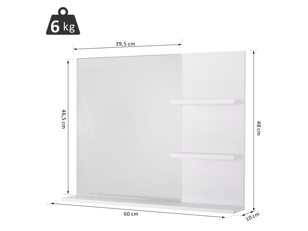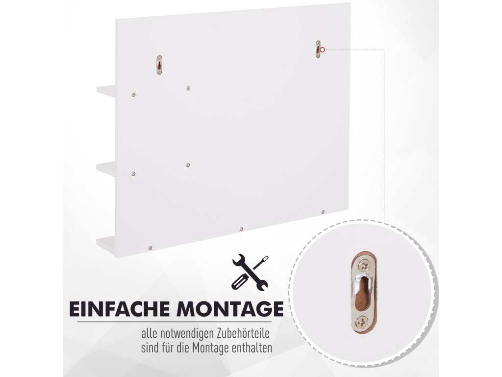 kleankin koupelnové zrcadlo nástěnné zrcadlo se 3 policemi, zrcadlová polička do koupelny, MDF bílá 60x10x48cm, moderní design pro pořádek | Aosom.de