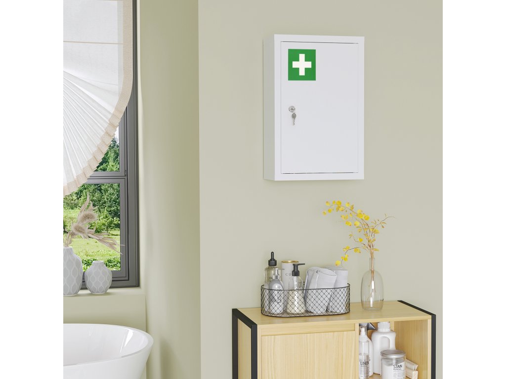 - Uzamykatelná: Tuto nástěnnou skříňku lze uzamknout pomocí 2 klíčů a použít ji k uložení lékárniček a léků mimo dosah dětí. Ideální pro domácnosti s domácími mazlíčky a dětmi.
