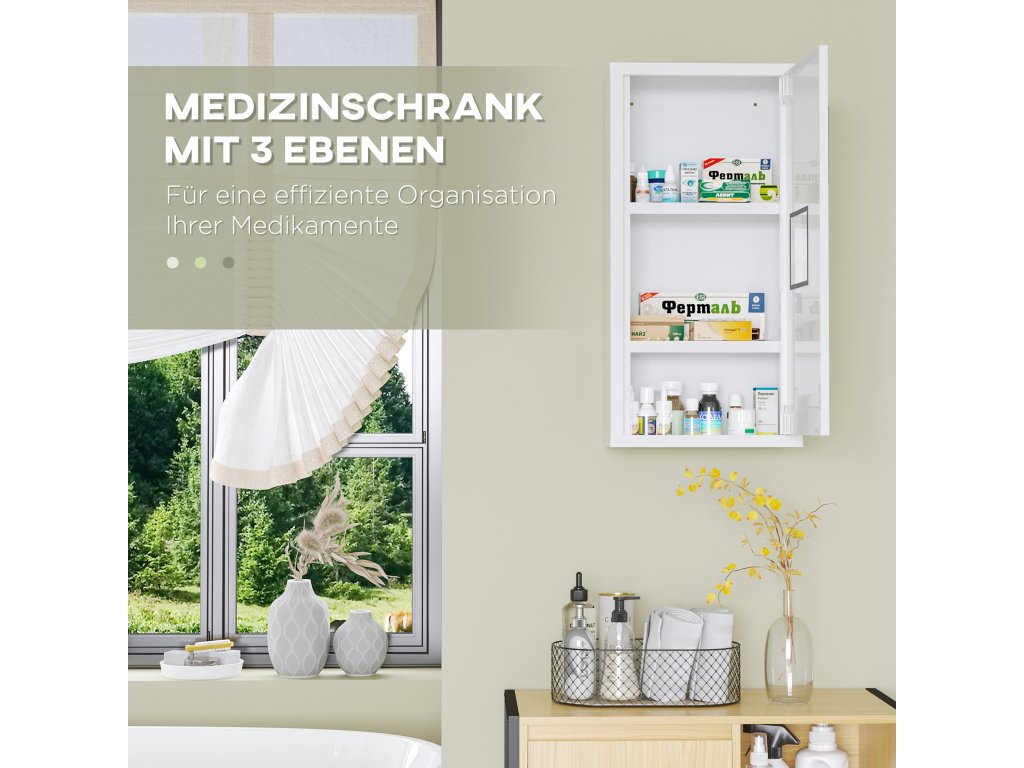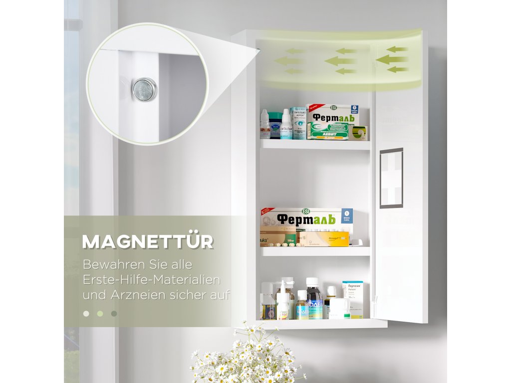 kleankin lékárnička Skříňka první pomoci bílá se 3 vnitřními přihrádkami a magnetickým zámkem na léky 40x15x53,5 cm | Aosom.de