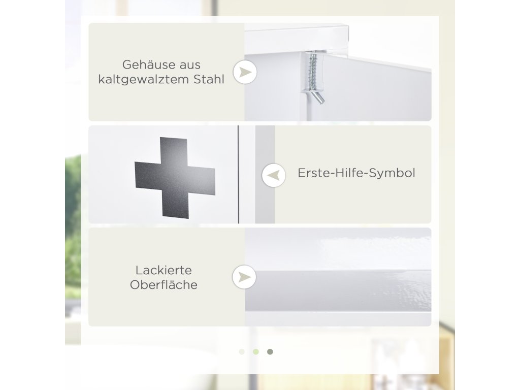 Bezpečnost rodin s dětmi a domácími mazlíčky je nejvyšší prioritou, zejména pokud jde o uchovávání lékařských předpisů a léků. Z tohoto důvodu je tato lékárnička nepostradatelným pomocníkem v každé domácnosti. Díky třem prostorným policím umožňuje tato lékárnička přehledné uspořádání a oddělení léků. Jasně viditelný kříž zajistí, že v případě nouze bude lékárnička okamžitě rozpoznána jako lékárnička.