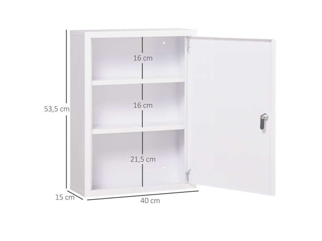 kleankin lékárnička uzamykatelná na stěnu se 2 klíči z oceli v bílé barvě 40x15x53,5cm do koupelny a kuchyně | Aosom.de