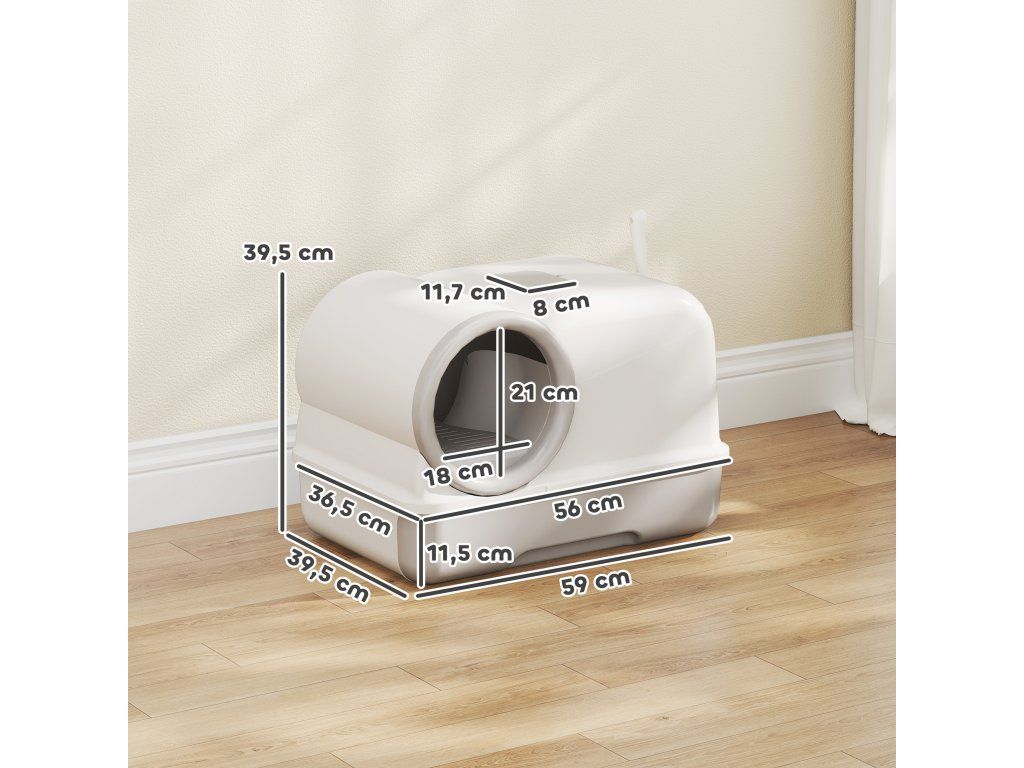 Kočkolit s víkem Výsuvná vanička s lopatkou 2 filtry s aktivním uhlím pro kočky do 5 kg 59x39,5x39,5cm Bílá+šedá