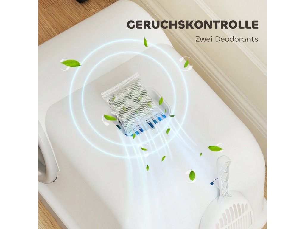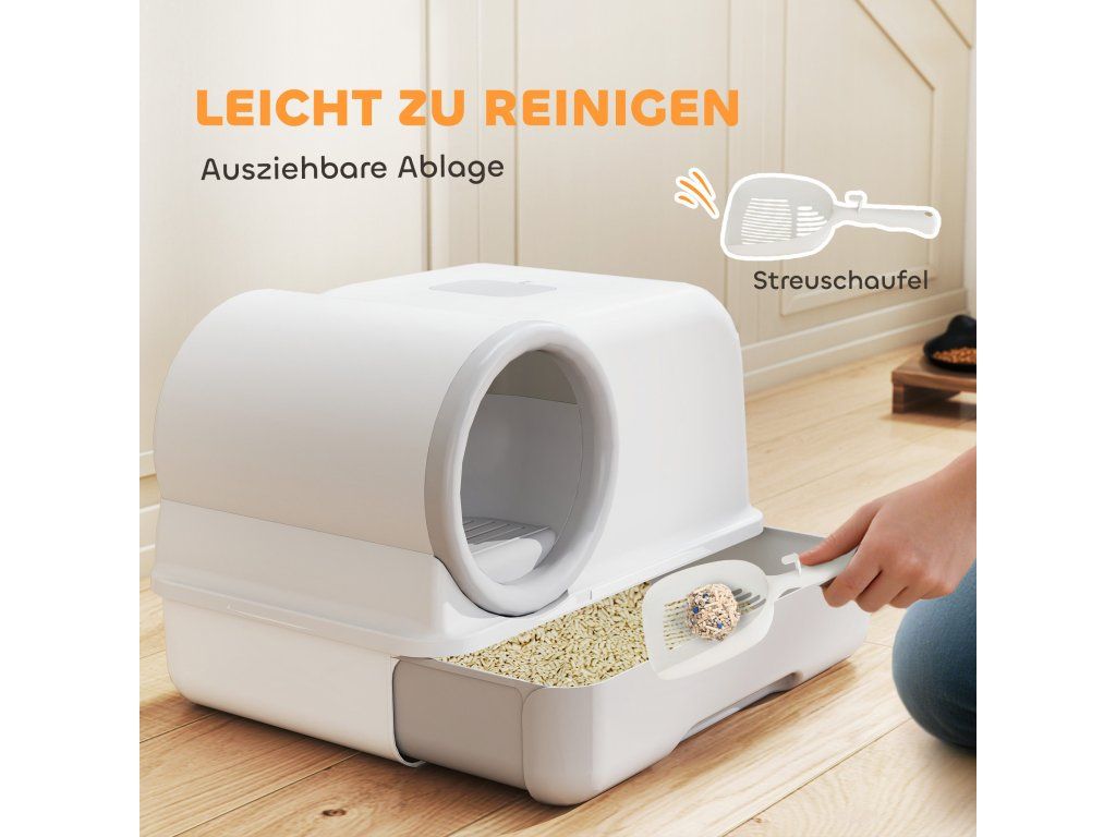 - Výsuvná čisticí vanička: Praktická základní vanička a lopatka na stelivo umožňují rychlé a snadné vybírání a výměnu steliva, což vám výrazně usnadní práci při úklidu.