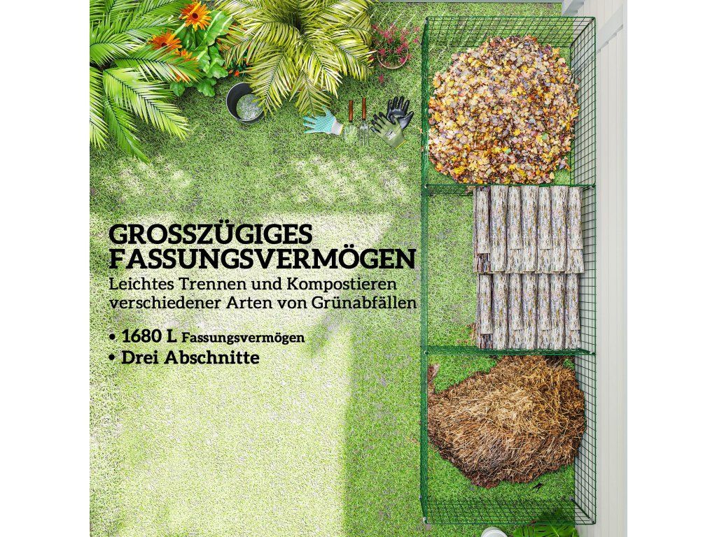 Kompostér 1680 litrů, 270 x 90 x 70 cm Třídílný rychlokompostér z oceli, odolný proti povětrnostním vlivům Zelený
