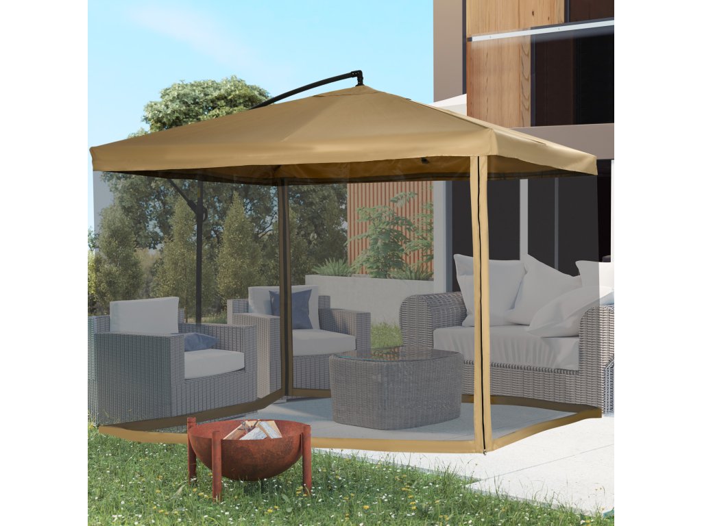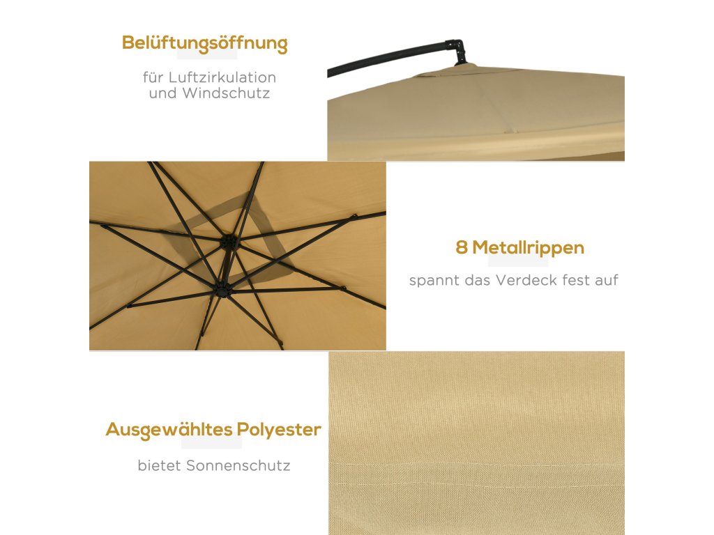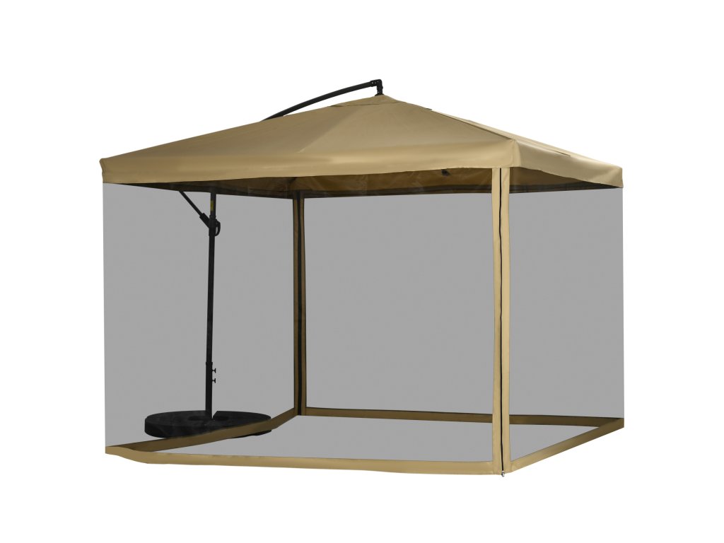 - Dobrá volba na léto: terasový slunečník s větracím otvorem zajišťuje dobré větrání v horkých dnech. Dodávaná moskytiéra zabrání vstupu "nechtěných návštěvníků". Ideální pro zahrady, bazény, terasy, verandy, dvory, trávníky, dvorky, balkony a jakékoli jiné venkovní prostory.