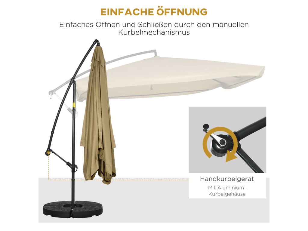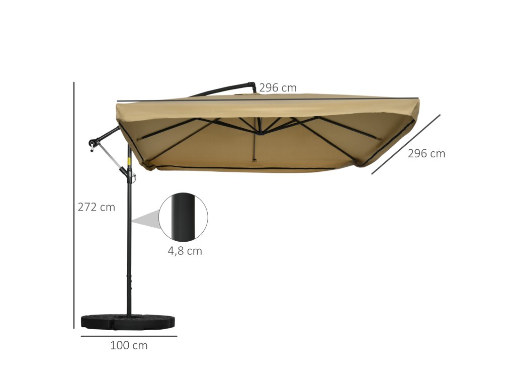 Konzolový slunečník Outsunny, 296 x 296 cm, sklápěcí slunečník, zátěžový slunečník, zahradní slunečník na terasu, balkon| Aosom