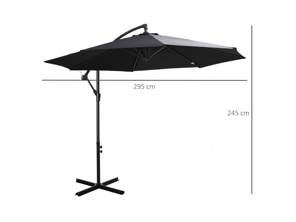 Konzolový slunečník Outsunny s kličkou, ocelový rám a polyesterová tkanina, černý, Ø3x2,5 m| Aosom