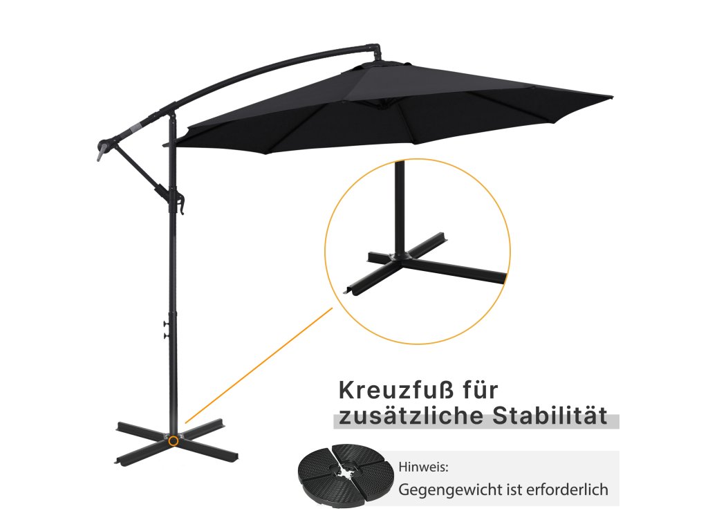 - Nenáročný: Váš slunečník lze snadno a rychle postavit i sundat. Základna ve tvaru kříže zaručuje vysokou stabilitu.
