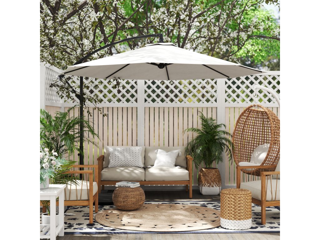 Náš velký, vysoce kvalitní konzolový slunečník od společnosti Outsunny je dokonalým stínítkem pro slunečné dny. Je všestranný a můžete ho použít na terase, balkoně nebo na večírku. Tyč slunečníku je vyrobena z robustní oceli. Samotný slunečník je vyroben z vodoodpudivého polyesteru. Úhel sklonu krytu slunečníku lze flexibilně nastavit, takže si můžete užívat tu nejlepší ochranu před silným slunečním zářením. Díky ruční klice se zahradní slunečník snadno otevírá a zavírá. Nechte léto začít!