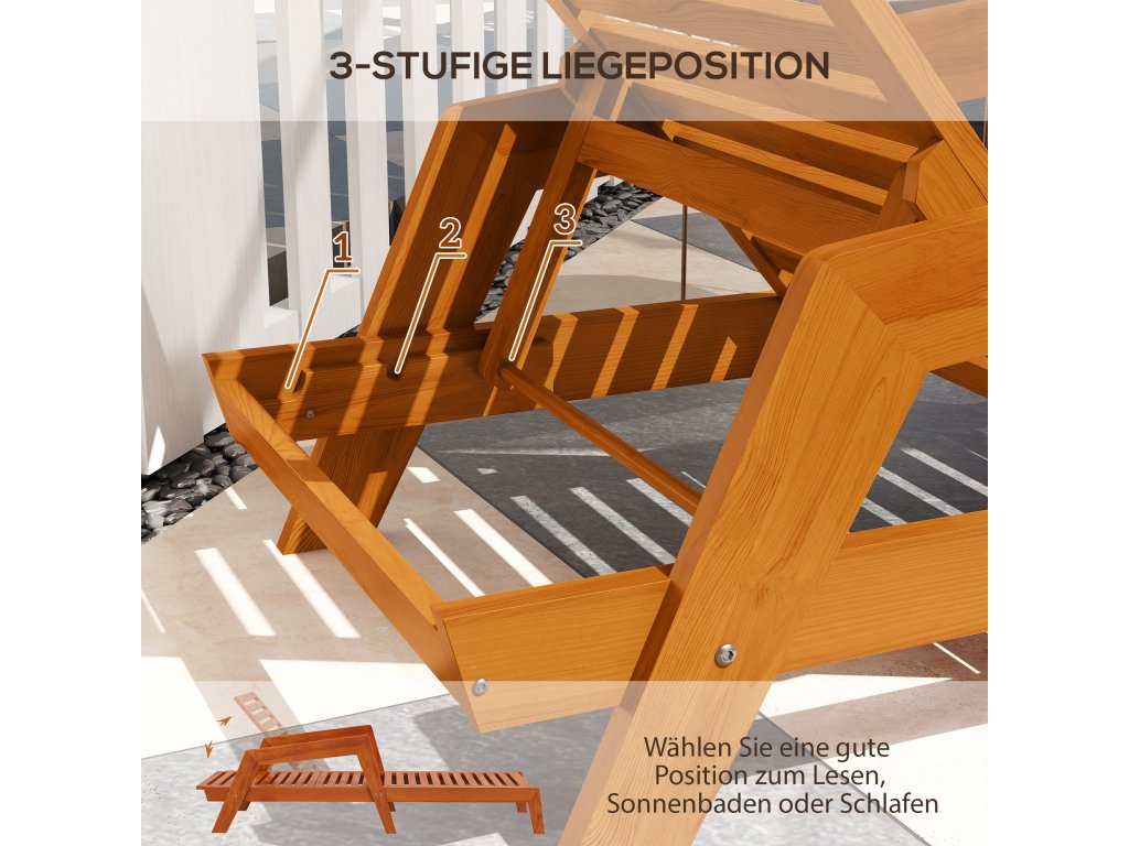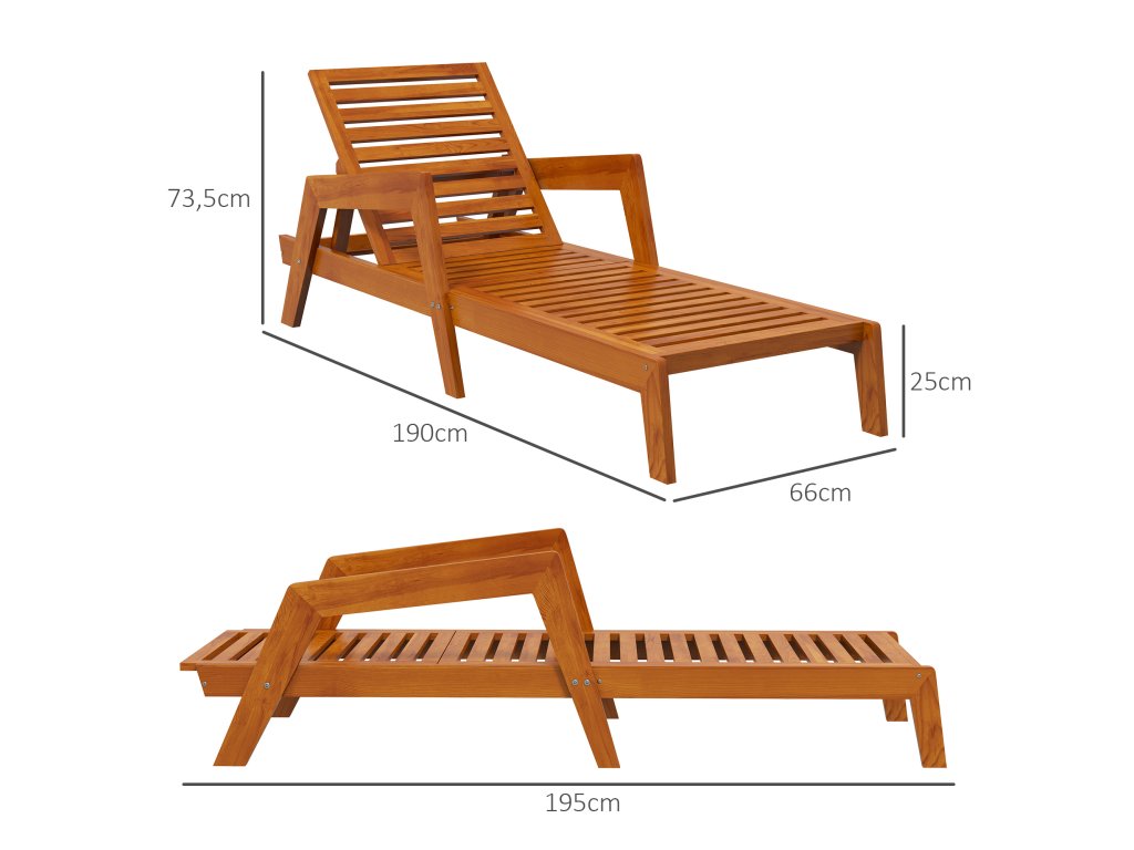 Lehátko Outsunny, nosnost až 120 kg, zahradní lehátko, lehátko odolné proti povětrnostním vlivům, na balkon, terasu, dřevo, 66 x 190 x 73,5 cm | Aosom