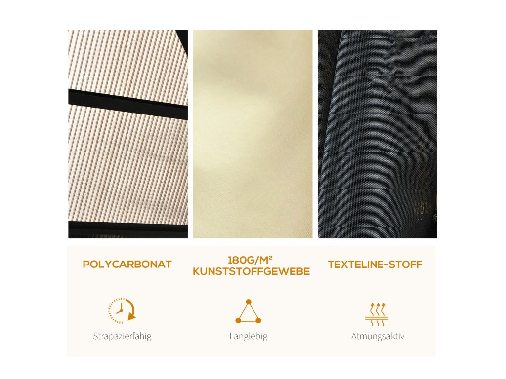 - ✔ Průsvitná, voděodolná střecha pavilonu z polykarbonátu odolného proti UV záření
