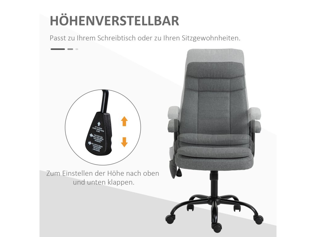 Tato kancelářská židle s masážní funkcí od společnosti Vinsetto vám osladí pracovní den. Vestavěná masážní funkce masíruje vaše dolní část zad. Měkké čalounění a svrchní materiál z prodyšné tkané látky poskytují dostatek pohodlí při dlouhém sezení. Díky otočným kolečkům se herní židle snadno přemisťuje. Vestavěná funkce houpání zajišťuje příjemné přestávky. Toto masážní křeslo od společnosti Vinsetto slibuje dostatek útulnosti během dlouhých pracovních dnů.