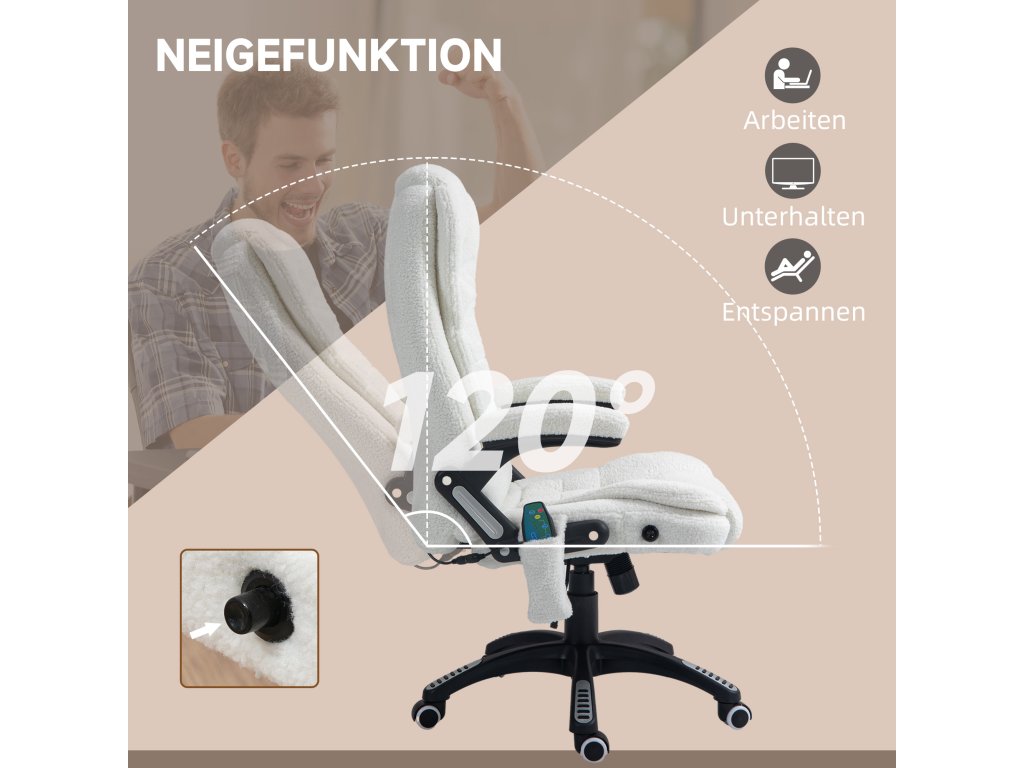 Masážní kancelářské křeslo Vinsetto, 67x74x107-116cm, výškově nastavitelné, s funkcí houpání, vyhřívání, polohování, podnožka, teddy velvet, bílé | Aosom