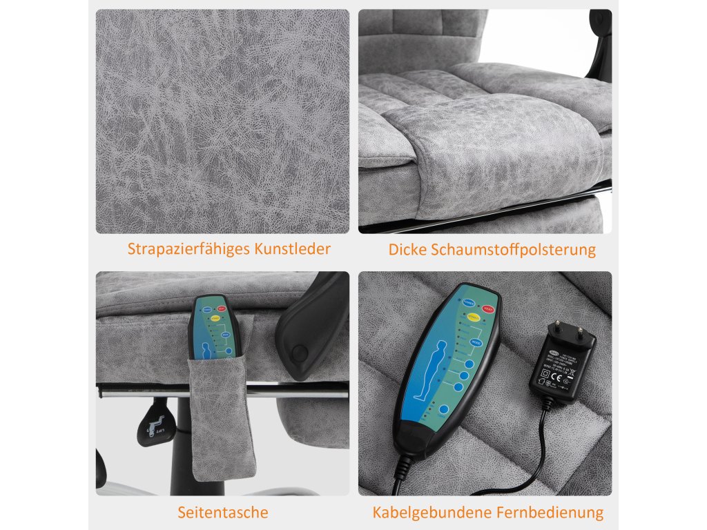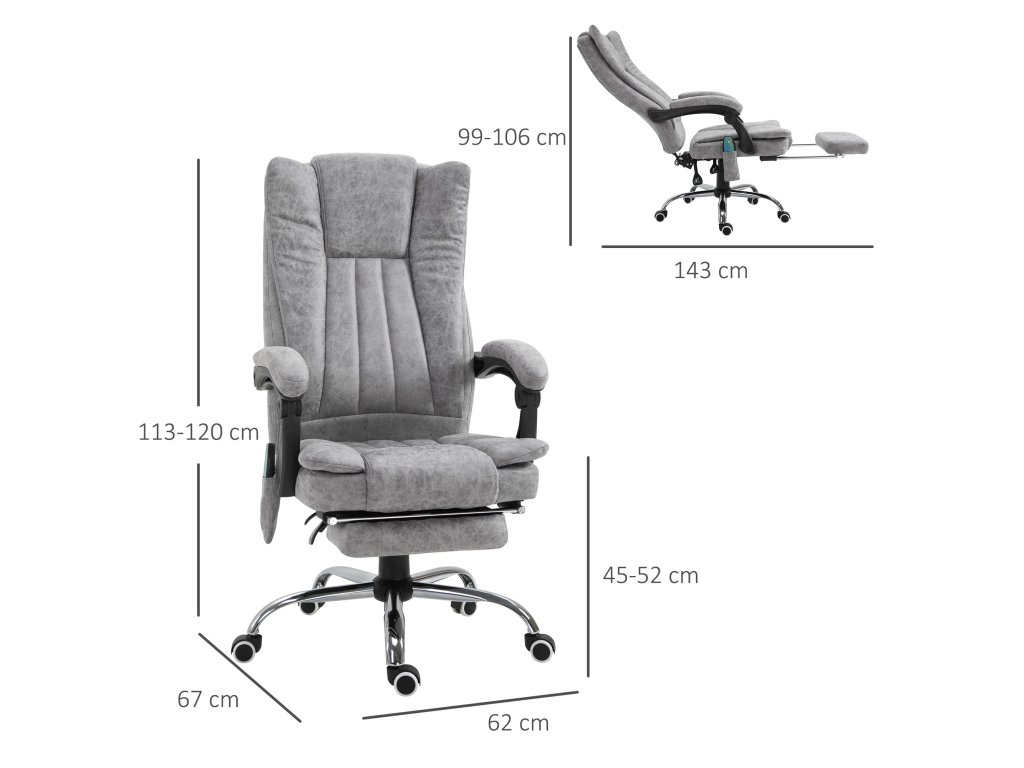 Masážní křeslo Vinsetto Kancelářské křeslo Masážní křeslo Funkce vyhřívání Funkce polohování Masážní funkce Podnožka Silné čalounění Šedá 62 x 67 x 113-120 cm | Aosom