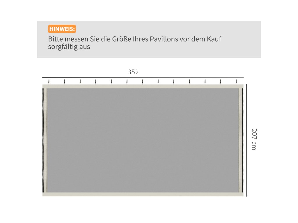 - ✔ Celkové rozměry: 352L x 207H cm