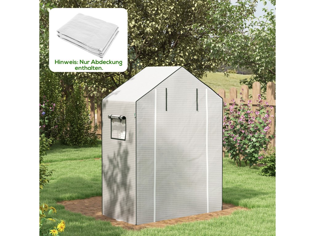 Náhradní fólie Outsunny Náhradní fólie PE s UV ochranou, rolovací dveře, boční okno, skleníková fólie pro skleník, skleník na rajčata, 140 x 73 x 190 cm, bílá