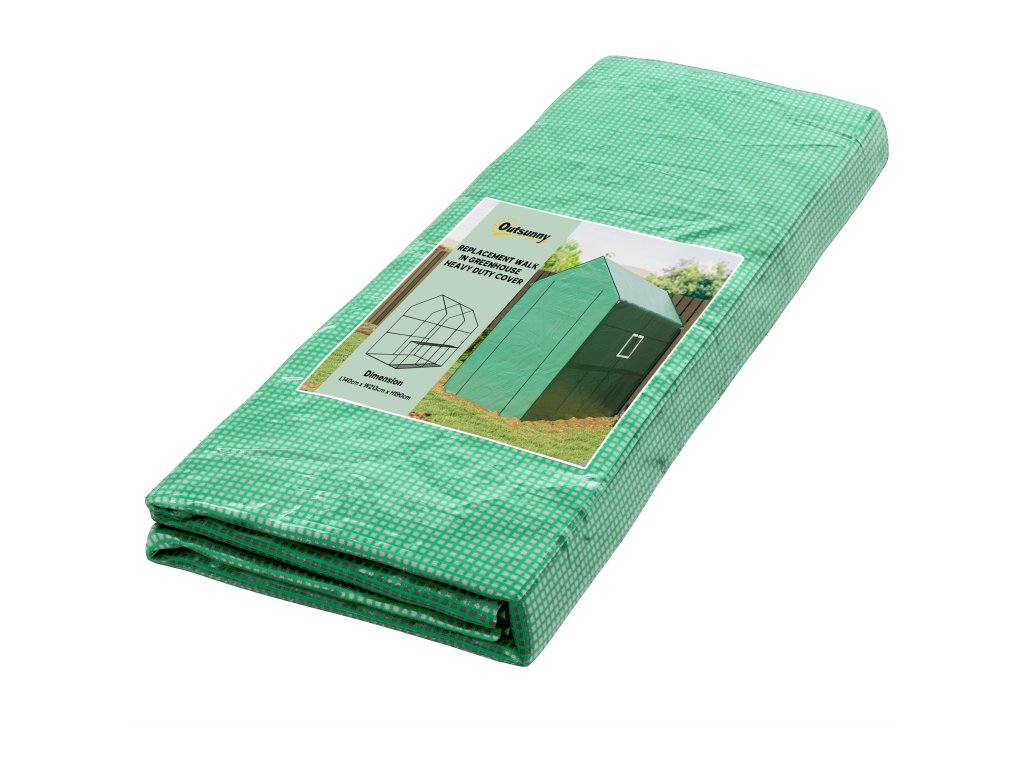 Tento náhradní kryt skleníku od společnosti Outsunny vám umožní pokračovat v pěstování rostlin, pokud je starý kryt poškozen. Až přijdou zimní mrazy a kolísavé teploty, zajistěte svým rostlinám ochranu. Naše plachta je vyrobena z PE síťoviny, která pomáhá udržet správnou teplotu vašich plodin. Prodlužte životnost a hodnotu svého skleníku.