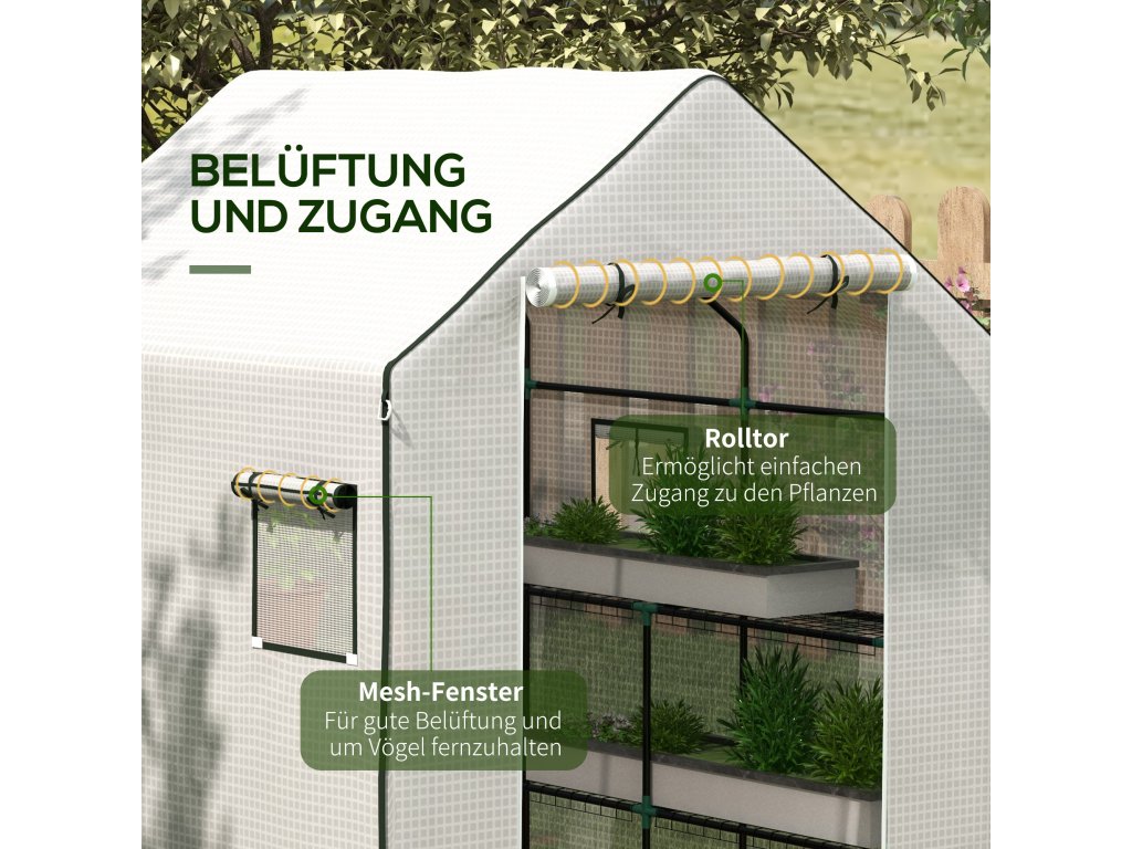 - ✔ rolovací dvířka a síťová okna na skleníkové fólii na rajčata pro snadný přístup a lepší křížové větrání pro regulaci teploty a vlhkosti