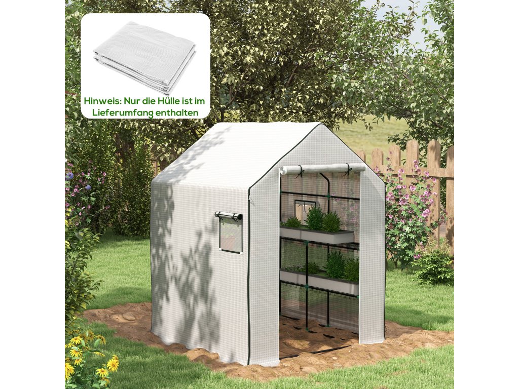 Náhradní skleníková fólie Outsunny s UV ochranou, boční okno, rolovací dveře, náhradní kryt, PE fólie pro rajčatový skleník, bílá, 140 x 143 x 190 cm