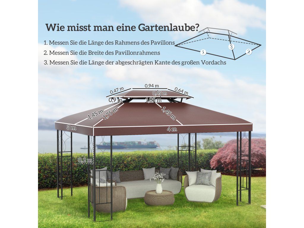 Náhradní střecha altánu Outsunny 3x4m káva polyester odpuzující vodu pro kovové a zahradní altány | Aosom.de