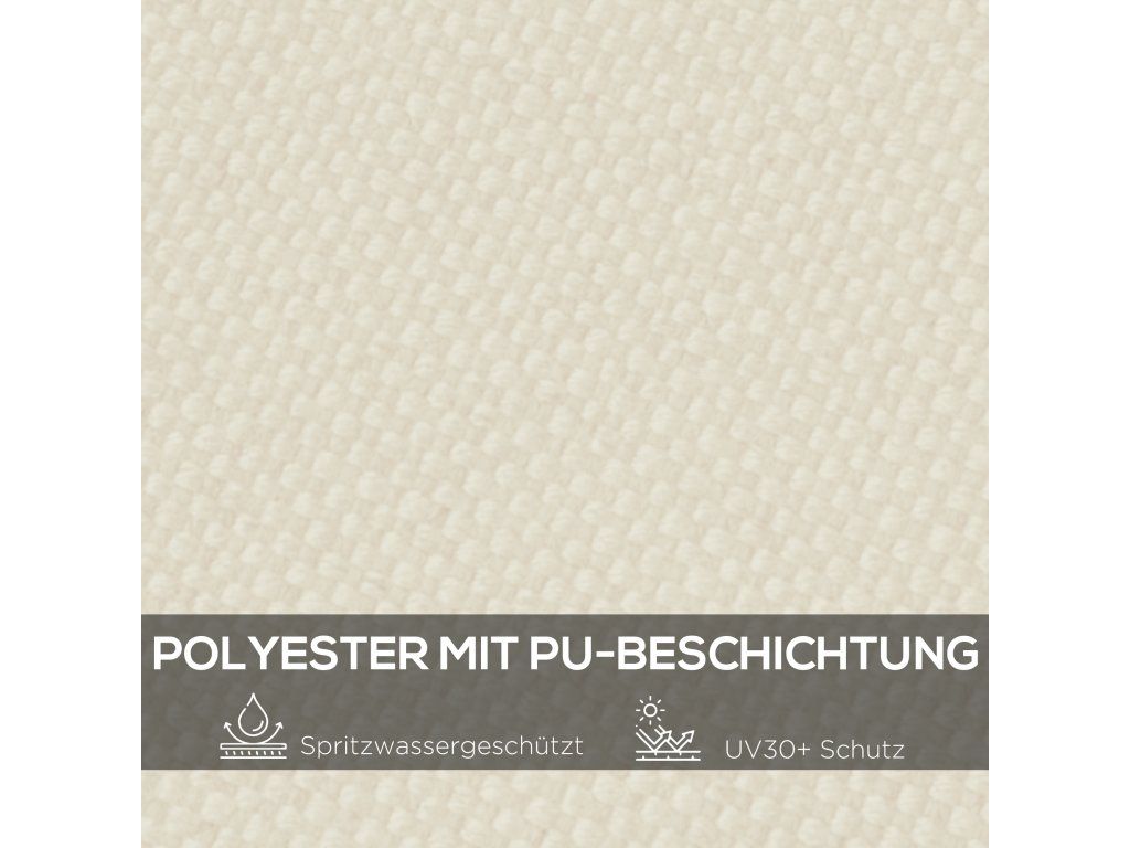 - Tkanina s PU zátěrem: polyesterová stříška na pergolu o hmotnosti 220 g/㎡ je odolná proti stříkající vodě a vyblednutí na slunci, má také ochranu proti UV záření UV30+.