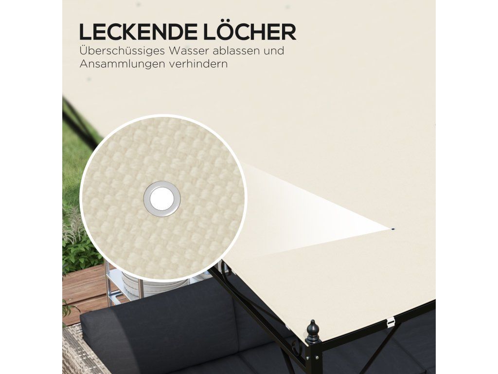 S touto náhradní střechou na pergolu od [NÁZEV ZNAČKY] můžete svou pergolu snadno oživit. Polyesterová tkanina o hmotnosti 220 g/㎡ je vhodná pro trvalé použití a je opatřena PU vrstvou, která chrání před UV zářením. Díky suchým zipům ji lze snadno nasadit i sundat. S odtokovými otvory, které zabraňují hromadění vody.