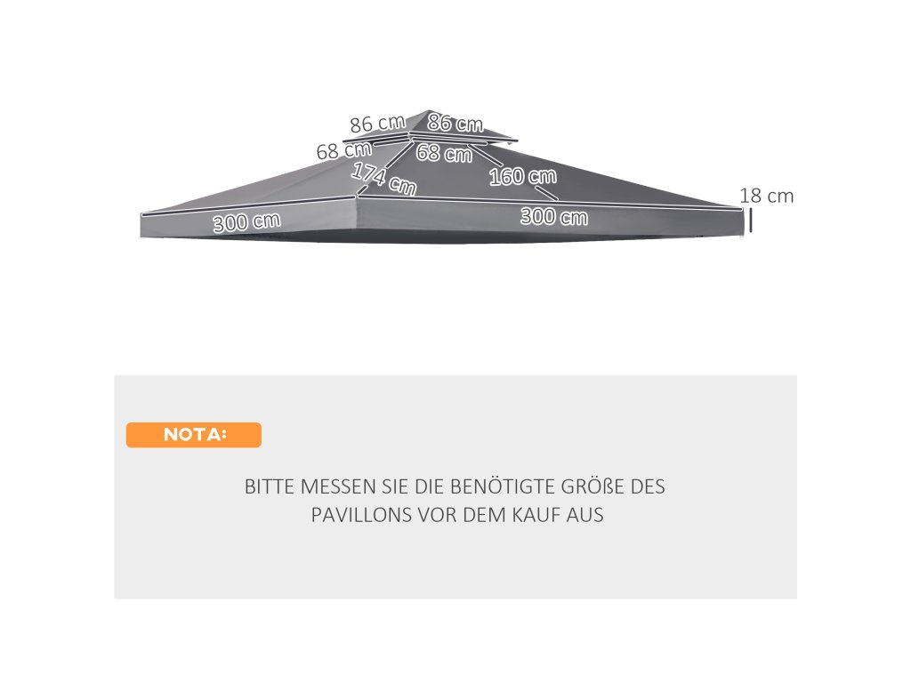 - Vysoce kvalitní náhradní střecha: Tato dvojitá střecha je vhodná pro zahradní altán se základní plochou 3 x 3 m.