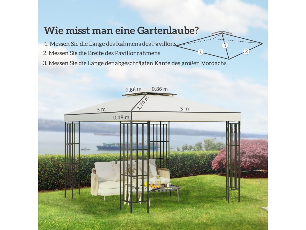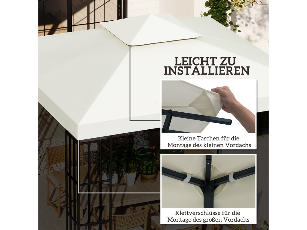 - Vysoce kvalitní náhradní střecha: Tato dvojitá střecha je vhodná pro zahradní altán se základní plochou 3 x 3 m.