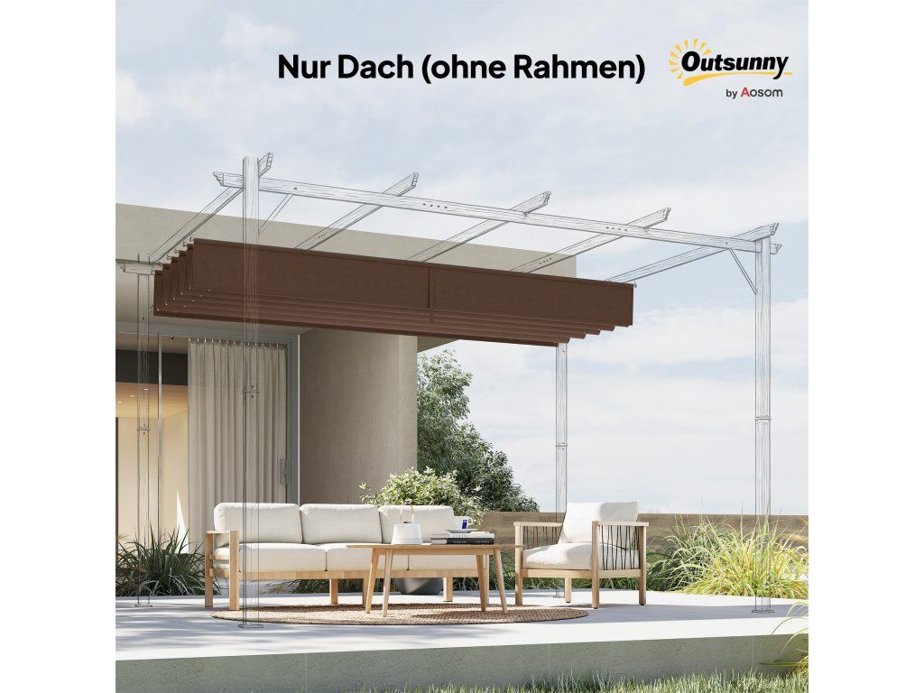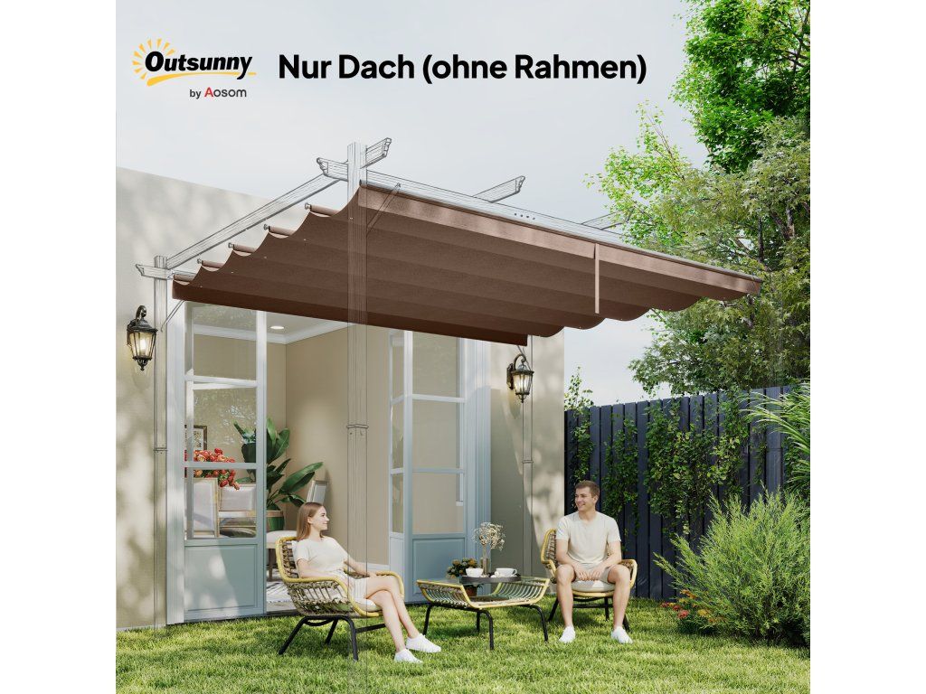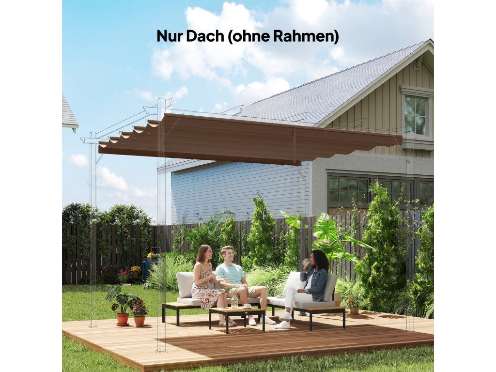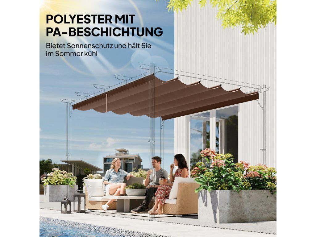 Náhradní střecha pro pergolu 4 x 3 m, zatahovací, s otvory pro odvod dešťové vody, odolná proti povětrnostním vlivům, polyester, 350 x 260 cm Káva