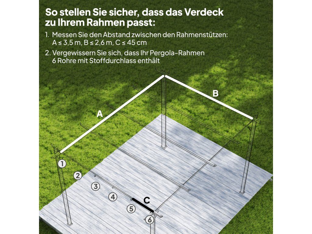 - ✔ Tento kryt pergoly má kapsy pouze pro šest tyčí