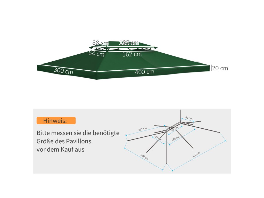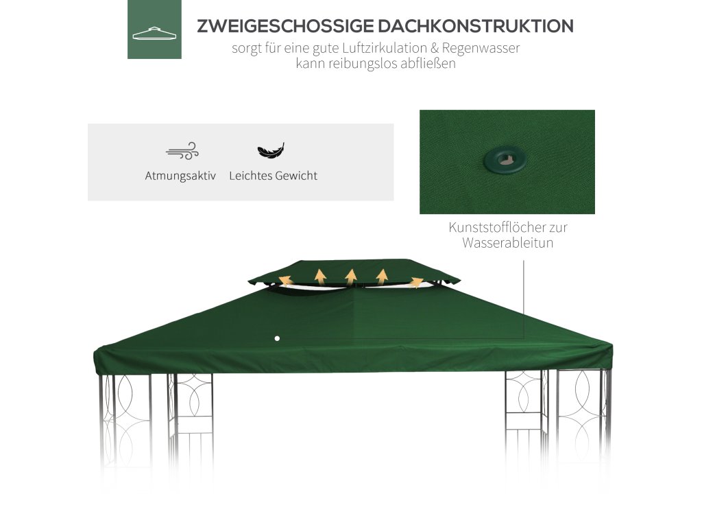 - VYSOCE KVALITNÍ NÁHRADNÍ STŘECHA: Tato dvojitá střecha je vhodná pro zahradní altán se základní plochou 3 x 4 m.
