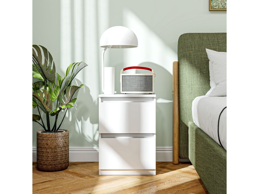 Noční stolek HOMCOM se 2 zásuvkami, odkládací stolek, noční stolek s úložným prostorem, noční komoda do ložnice, obývacího pokoje, cca 40 x 32 x 56 cm, bílá barva